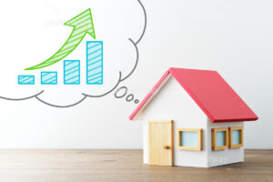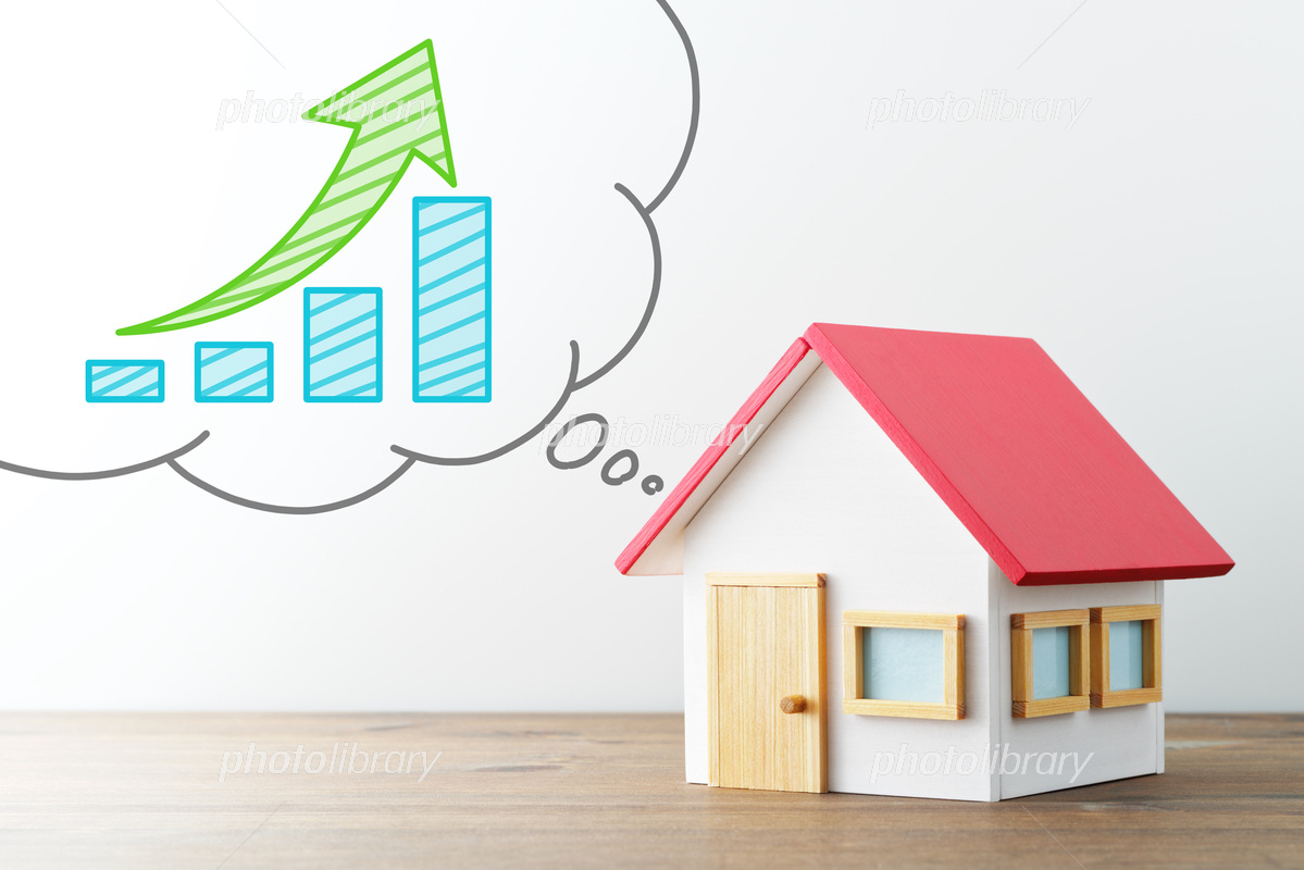 Increasing in house value. Investment in property. Miniature hou Increasing in house value. Investment in property. Miniature house and illustrations graph in balloon. 2026.02.15